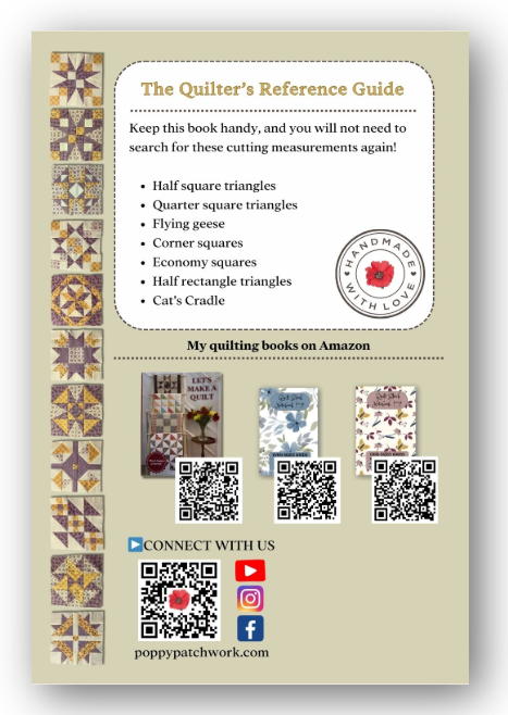 In July 2025, we published the "Quilter's Quick Reference Guide", a useful reference book for any Quilter's table, which includes measurements and cutting charts right for your favourite quilt block units at your fingertips.
